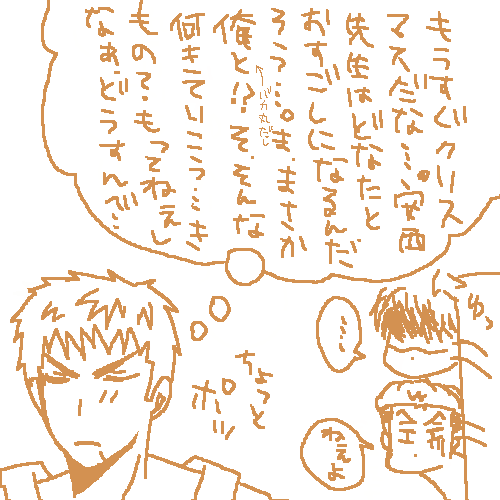 クリスマスまでの仮TOPにしようと思って書いてみたけど思いのほかみっちゃんがぶさいくになって途中で放り投げたイラスト、です。